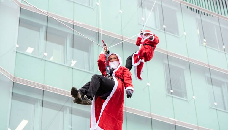 FOTO in VIDEO: Božički so se spustili s strehe ljubljanske otroške bolnišnice