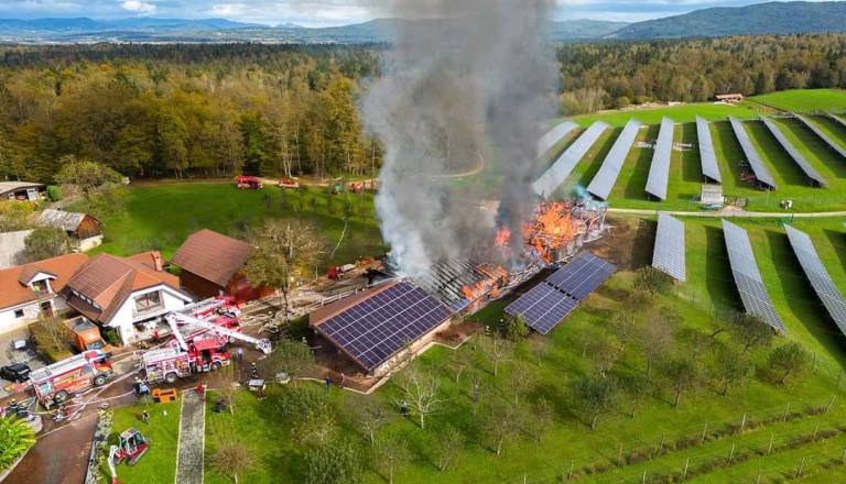 Zagorel gospodarski objekt s sončno elektrarno, uskladiščeni kmetijski stroji in osebno vozilo popolnoma uničeni