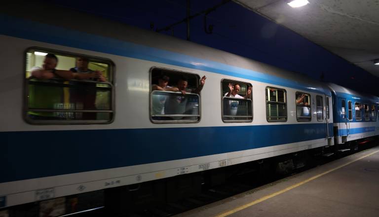 FOTO: Iz Ljubljane na pot proti Frankfurtu zgodaj zjutraj krenil navijaški vlak