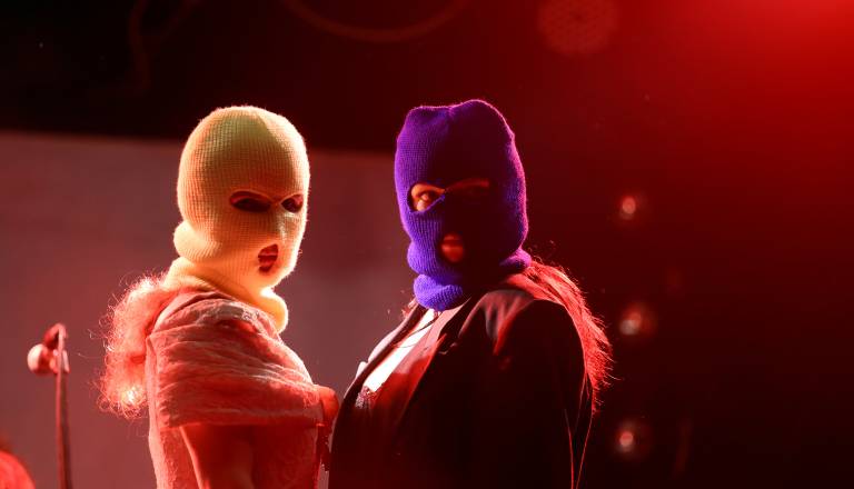 FOTO: Kontroverzna feministična zasedba Pussy Riot nastopila v Ljubljani: Putin je nacist