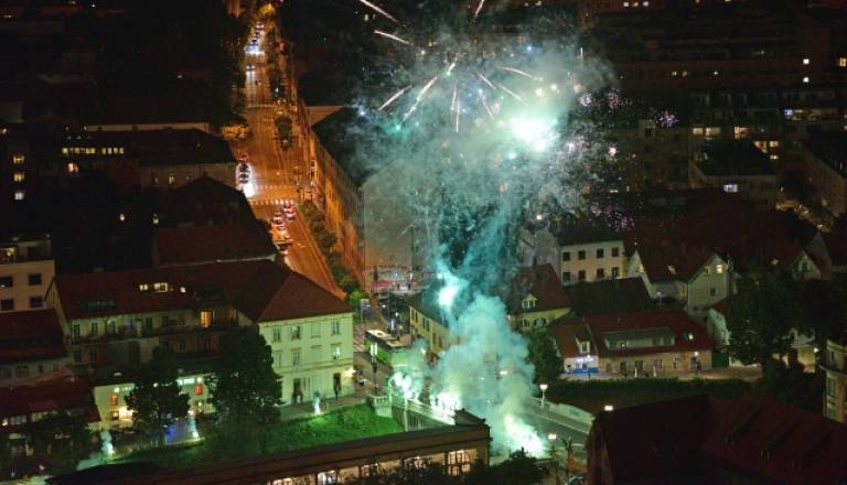 FOTO in VIDEO: Green Dragonsi v centru Ljubljane pripravili pravi pirotehnični šov