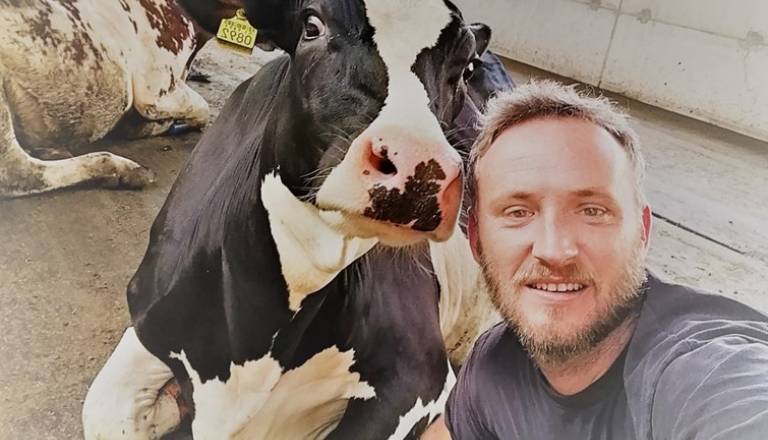 Srečna krava, srečen kmet, pravi kmet Čretnik, ki v svojem hlevu kravam nudi tla kot na pašniku in masažo
