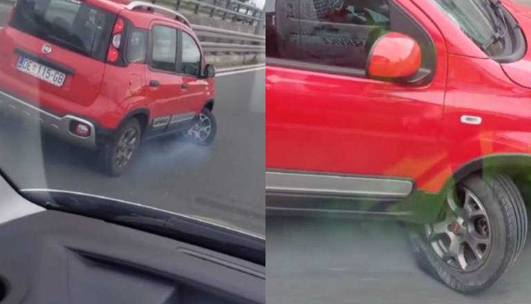 VIDEO: Bizarna vožnja po obvoznici. Avtomobil s poškodovanim kolesom presenetil voznike