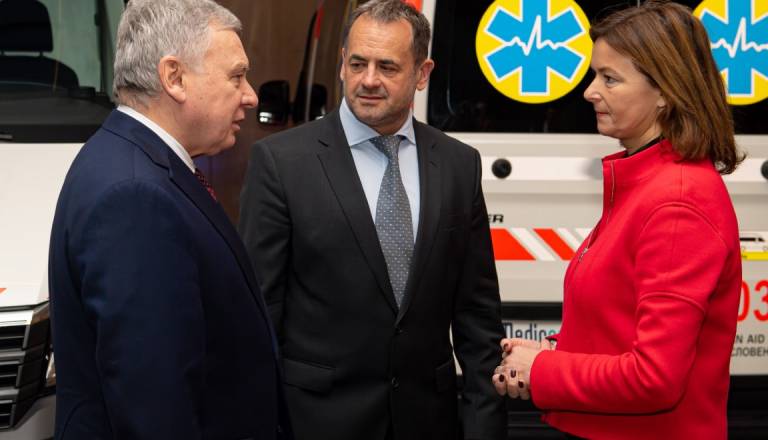 FOTO: Tanja Fajon ukrajinskemu veleposlaniku predala dve reševalni vozili