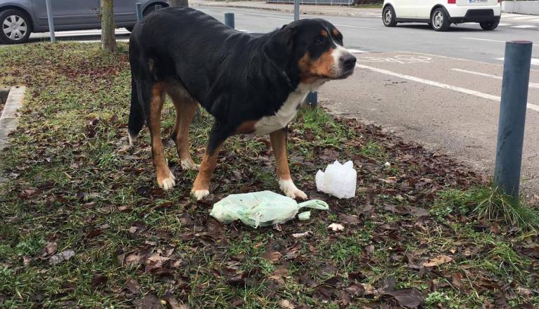 Morda veste, čigav je? Pes sam tava okoli in išče hrano