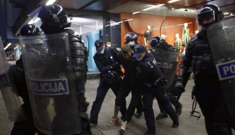 Na protestih napadel policiste, zdaj obsojen na zaporno kazen