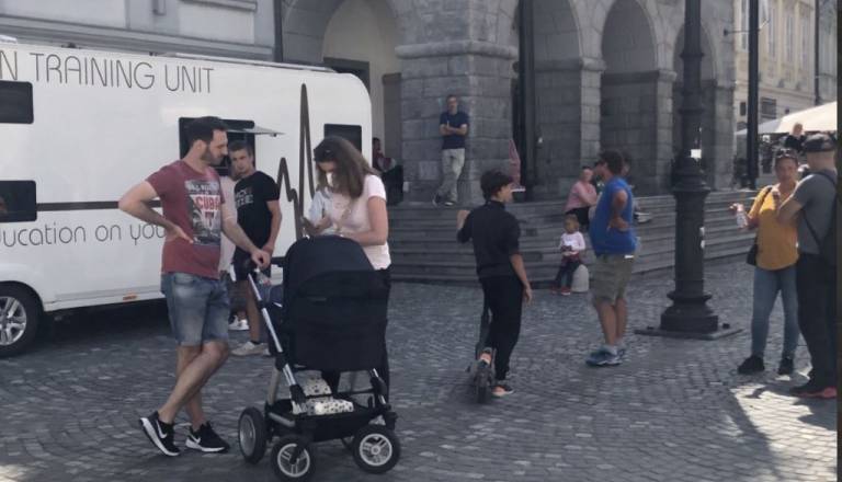 FOTO: Na Kongresnem trgu OVIRANtlon – triatlon z ovirami, s kakršnimi se srečujejo gibalno ovirani