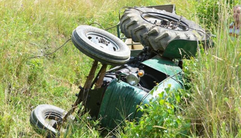 72-letnika traktor stisnil ob drevo, umrl na kraju nesreče