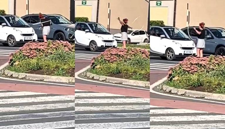 VIDEO: Intervencija na križišču: Ženska 'skočila' pred avtomobile in začela plesati