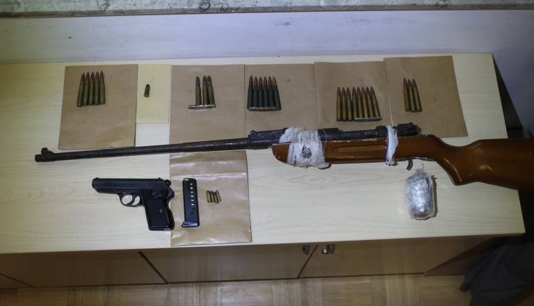 Hišni preiskavi pri 28-letnikoma razkrili orožje, strelivo in drogo