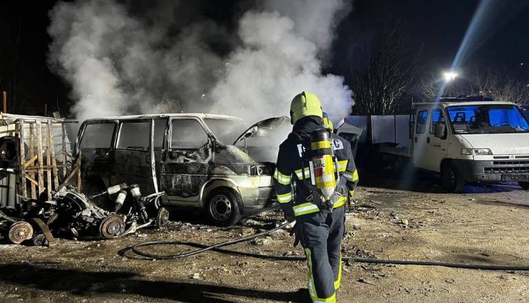 Dva požara v razmaku le nekaj minut, zgorel tudi kombi in kup odpadnih gum