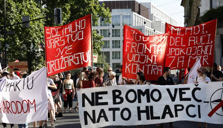 FOTO: Protest 'Ljudska fronta - vojni kontra!' potekal na Kongresnem trgu