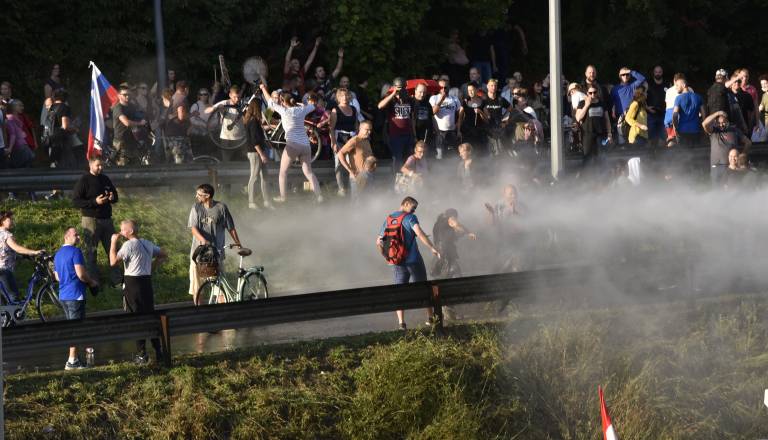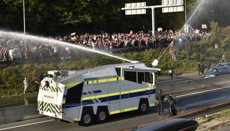 S protesti proti covid ukrepom zaprli ljubljansko obvoznico, policija tudi tokrat uporabila vodni top