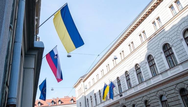 Slovenija podprla Ukrajino, na vladnih zgradbah izobešene ukrajinske zastave