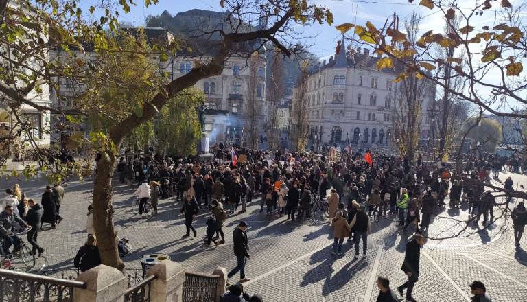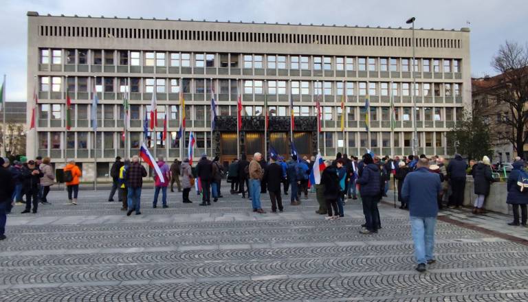 FOTO: Protestniki pred Mestno hišo: To zahtevajo od ljubljanskega župana Zorana Jankovića