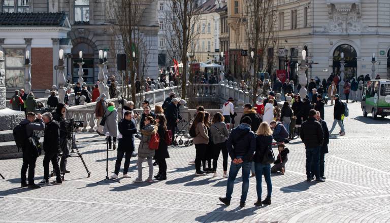 FOTO in VIDEO: Slovenci iz Ljubljane izkazujejo podporo Ukrajini