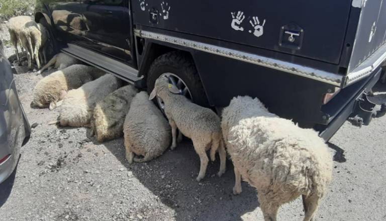 Kaj se dogaja? Ovce se na priljubljeni izletniški točki stiskajo k avtomobilom