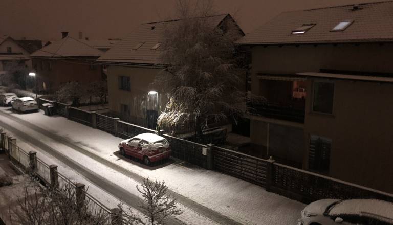 FOTO: Ljubljanske strehe in ulice pobelil sneg