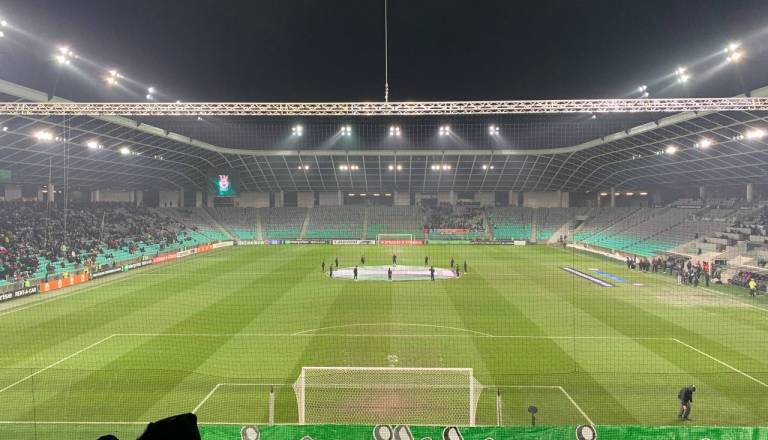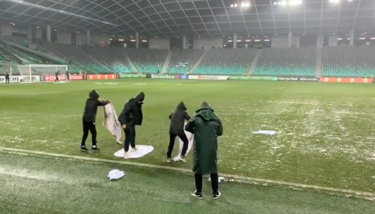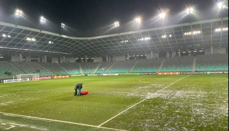 FOTO in VIDEO: Dvoboj Olimpije in Lilla bo blaten, kako so v Stožicah reševali težave z razmočenim igriščem?