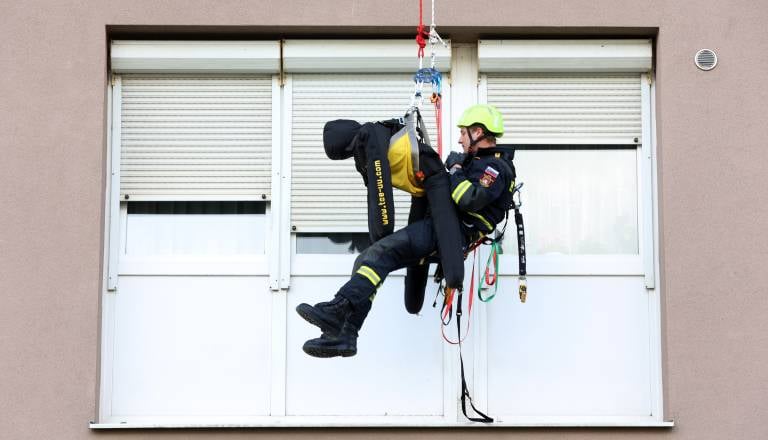 FOTO in VIDEO: Na vrvi, napeti čez Ljubljanico, visela gasilca