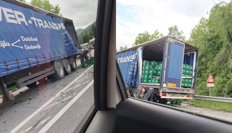 FOTO: Že drugič ta teden zaboji piva končali na cesti