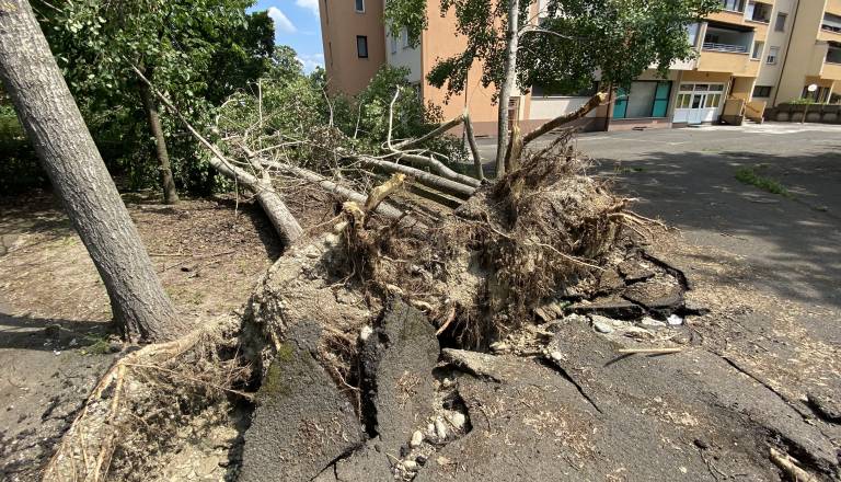 Vremenske nevšečnosti: Drevo padlo na otroška igrala in zaprlo vhod v večstanovanjsko stavbo