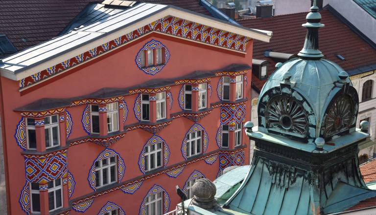 Lokalno | 0 komentarjev FOTO: Najlepšo hišo v Ljubljani oblačijo v gradbeni oder: Je fasada Vurnikove hiše poškodovana?