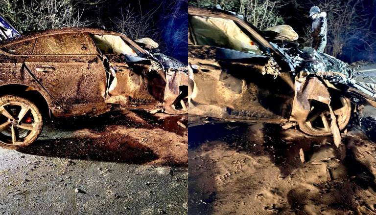 Grozljiva nesreča: Trčil v betonski zid, nato je vozilo zagorelo