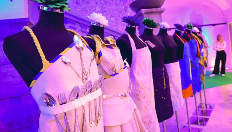 FOTO: Odnos do odpadne hrane: Modna revija trajnostnih kuharskih predpasnikov